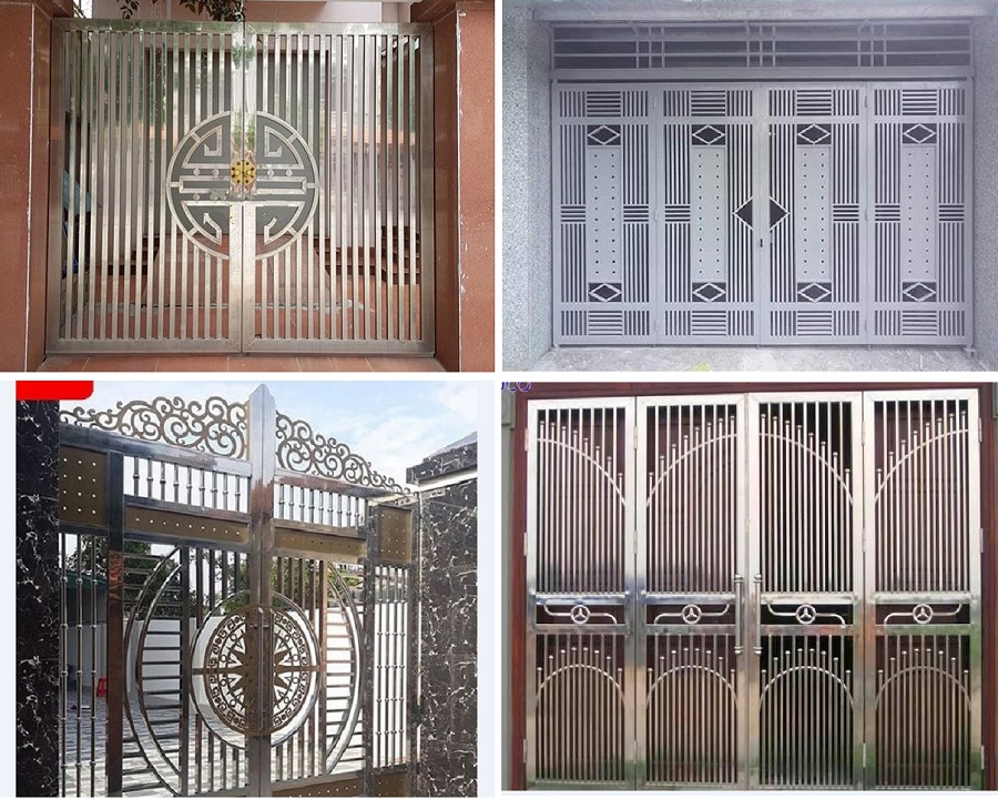 - Cổng Xếp/Cổng Tự động: Dùng thanh xếp, có loại kéo tay (sắt, inox 201) và tự động (thường dùng Inox 304).