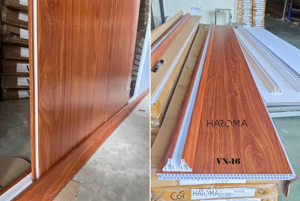 - Thẩm mỹ: Đa dạng vân gỗ, giả đá, bền màu.