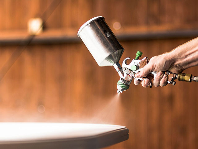 - Sơn màu: Phun hoặc quét đều lớp sơn màu lên toàn bộ bề mặt gỗ theo yêu cầu, chờ khô.
