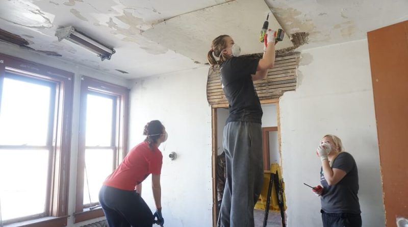 - Bước 4: Thi công sửa chữa: Tiến hành tháo dỡ, gia cố khung xương, bắn tấm, bả matit và sơn hoàn thiện.