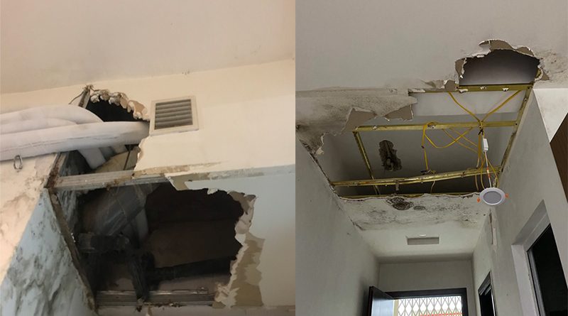 - Trần thạch cao bị ố vàng, mốc đen do rò rỉ nước.
