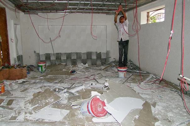 - Phá dỡ vách thạch cao kết hợp khung xương sắt.