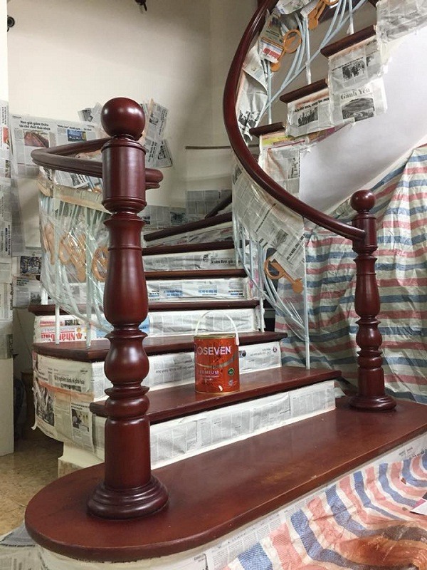 2. Sơn cầu thang gỗ: Tay vịn, bậc cầu thang.