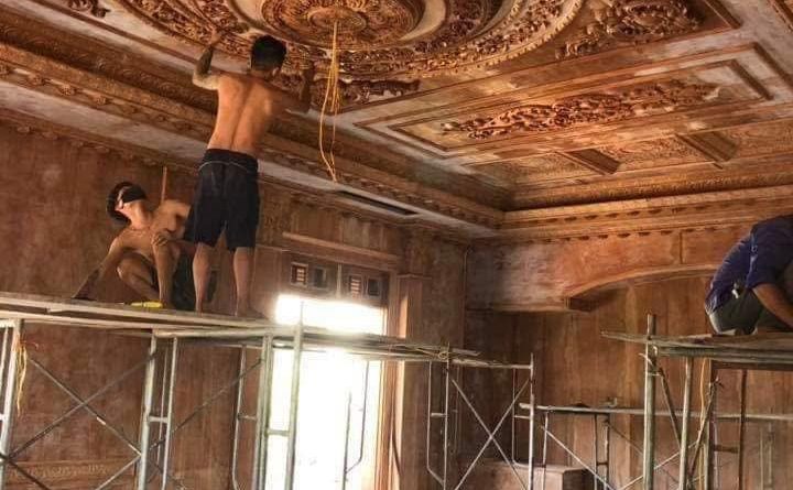 • Tiến hành lắp đặt các chi tiết phào chỉ, hoa văn trang trí đặc trưng của phong cách tân cổ điển một cách tỉ mỉ, chính xác.