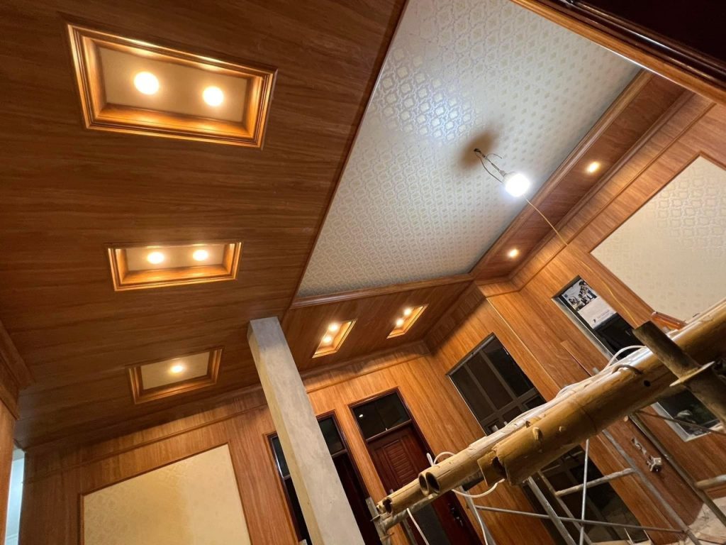 - Trần nhựa giả gỗ (PVC, Nano): Giá thi công có thể từ 350.000 – 550.000 VNĐ/m2 (tùy độ dày và quy cách tấm).