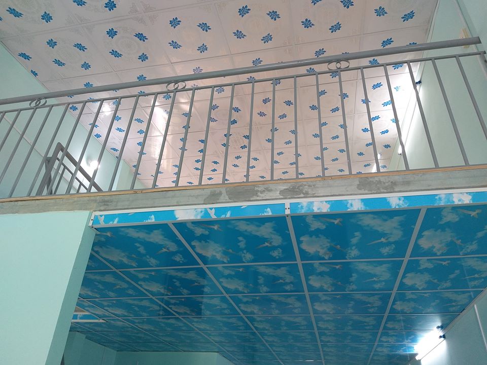 - Lắp đặt tấm trần: Đặt các tấm nhựa 60×60 vào các ô vuông của khung xương. Các tấm có thể có hoa văn trang trí hoặc trơn.