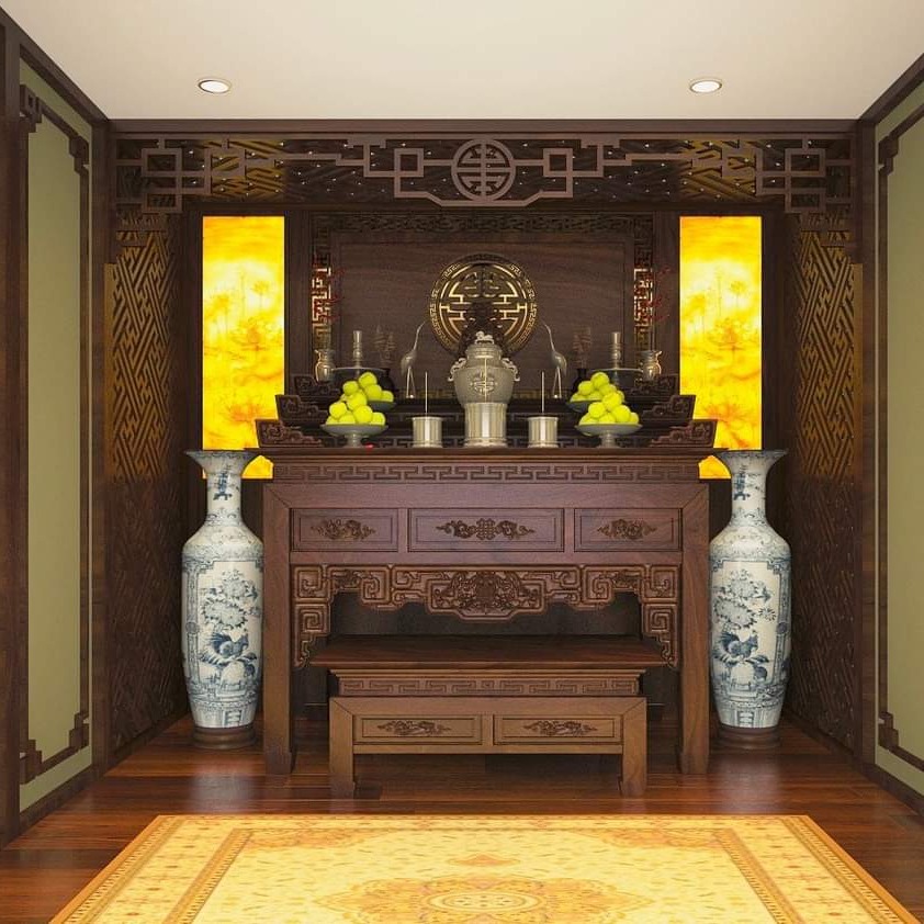 • Phân chia phòng khách với cầu thang hoặc phòng thờ, giúp khu vực thờ cúng trang nghiêm và yên tĩnh hơn.