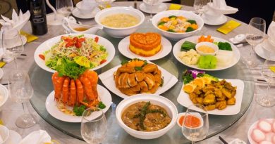 Gỏi ngó sen tôm thịt, Heo sữa quay, Gà lá chanh ăn kèm xôi gấc