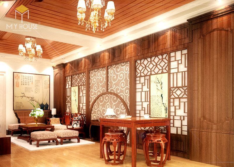 - Tạo điểm nhấn: Vách gỗ có thể được thiết kế tinh xảo, kết hợp với các chi tiết chạm khắc, hoặc dùng làm kệ để trưng bày đồ vật, tạo nên điểm nhấn nghệ thuật cho không gian.