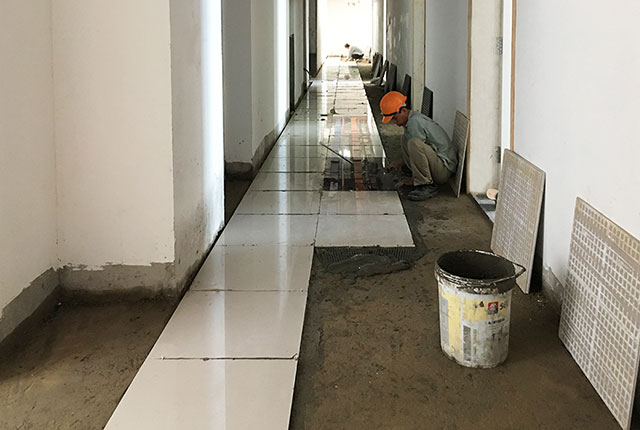 • Thường xuyên có mặt tại công trình để giám sát quá trình thi công, đảm bảo thợ làm đúng kỹ thuật và quy trình, ví dụ như việc chuẩn bị bề mặt, trộn vữa, lát gạch và trét mạch.