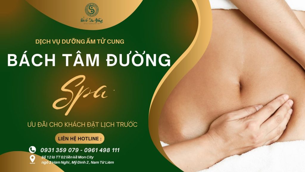Các spa chuyên nghiệp như Spa Bách tâm Đường thường cung cấp các dịch vụ kết hợp gội đầu, massage body, chăm sóc da và liệu pháp làm ấm tử cung. Các liệu pháp làm ấm tử cung có thể bao gồm massage, xoa bóp, chườm ấm, thảo dược và xông hơi để tăng cường lưu thông khí huyết, điều hòa nội tiết và hỗ trợ sức khỏe sinh sản.