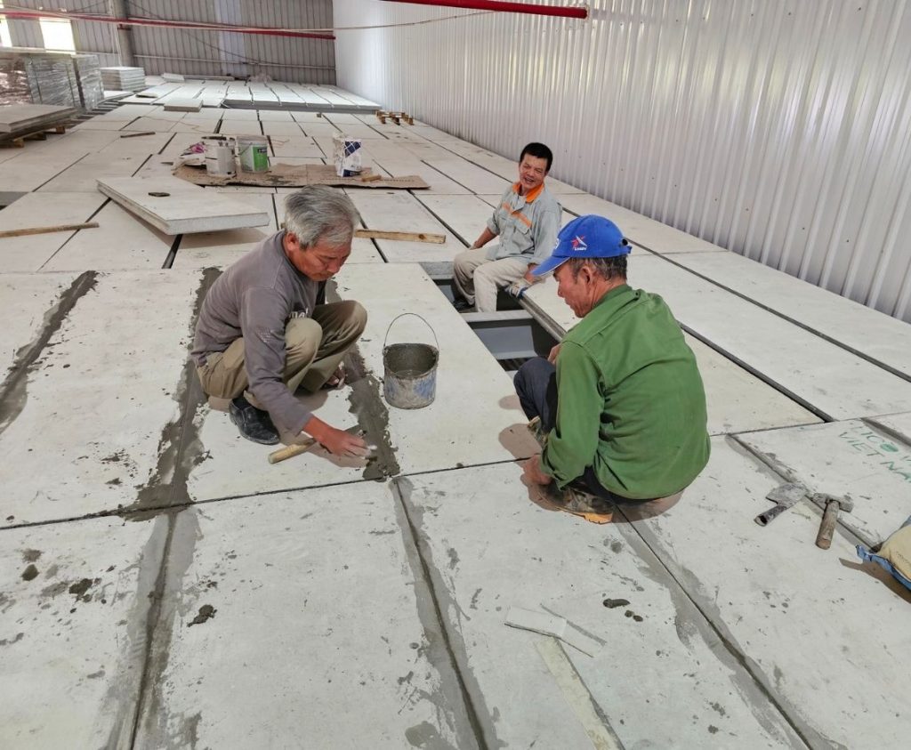 - Vữa liên kết chuyên dụng: Dùng để gắn kết các tấm sàn bê tông nhẹ với nhau, tạo sự liền mạch và tăng cường độ bám dính.