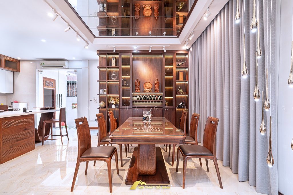 - Bộ bàn ăn: Bộ bàn ăn gỗ óc chó tạo cảm giác ấm áp và gần gũi, nâng tầm các bữa ăn gia đình.